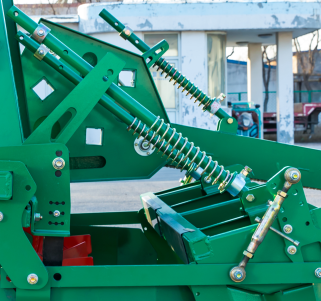 压簧连接杆由连接架、压簧、连接杆和挡套组成。在工作时,压簧起到给成形器向下的压力作用,使其成形比较完整。 当机器需要调头或者道路行走时,连接杆和挡套起到阻止成形器下降的作用,通过调整杆上孔的位置可以调整其距离地面的高度。